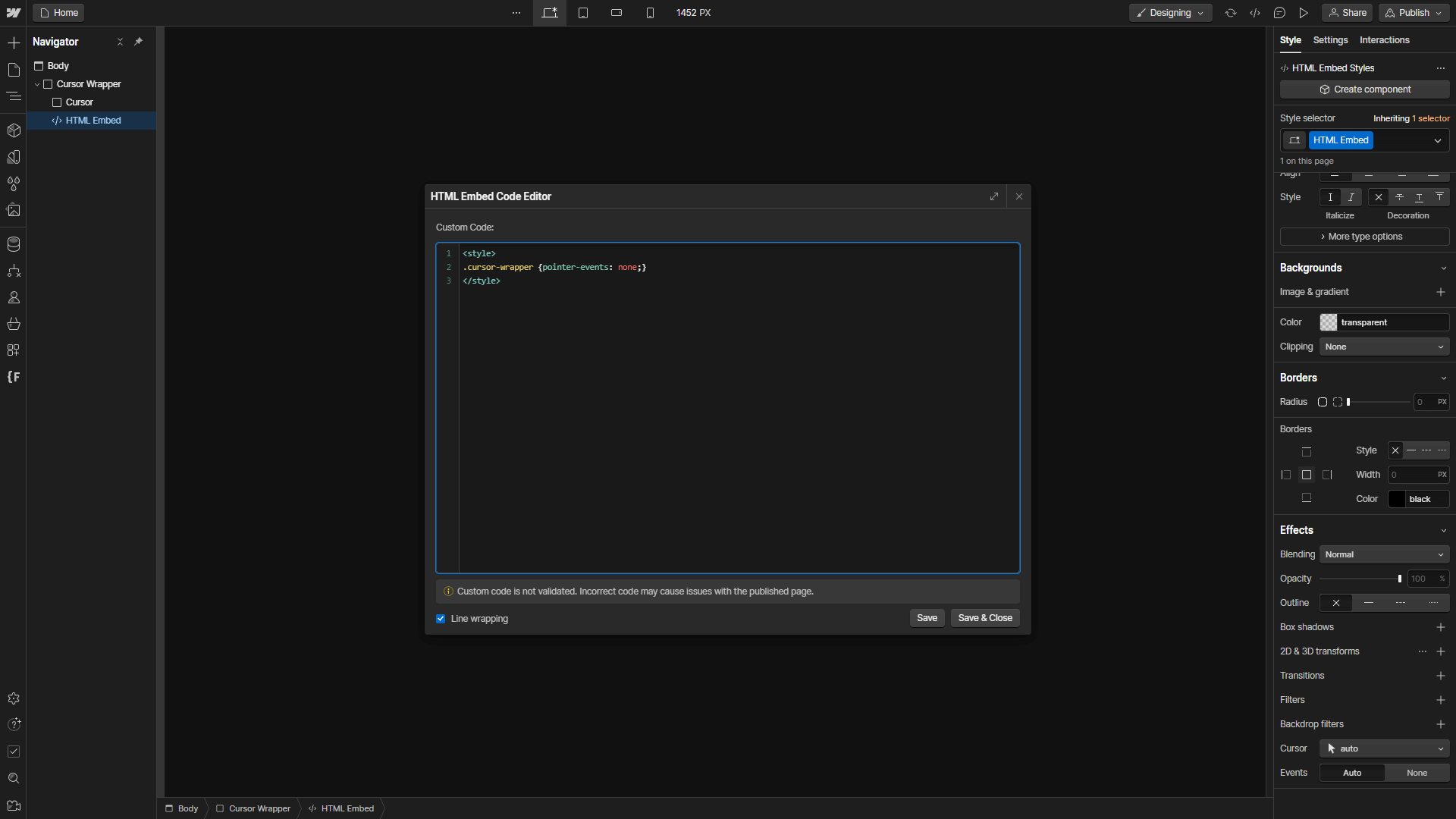 Now that we finished building the Cursor Design & even added the HTML Embed to make it work properly, we have to make sure we can actually move the Cursor and use it to interact with the Website.