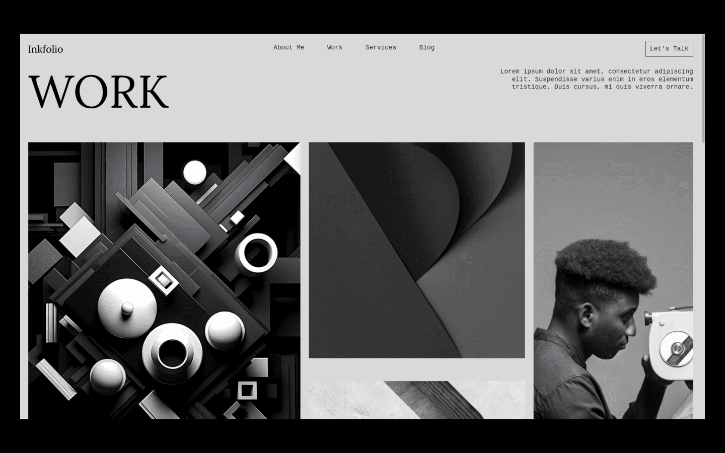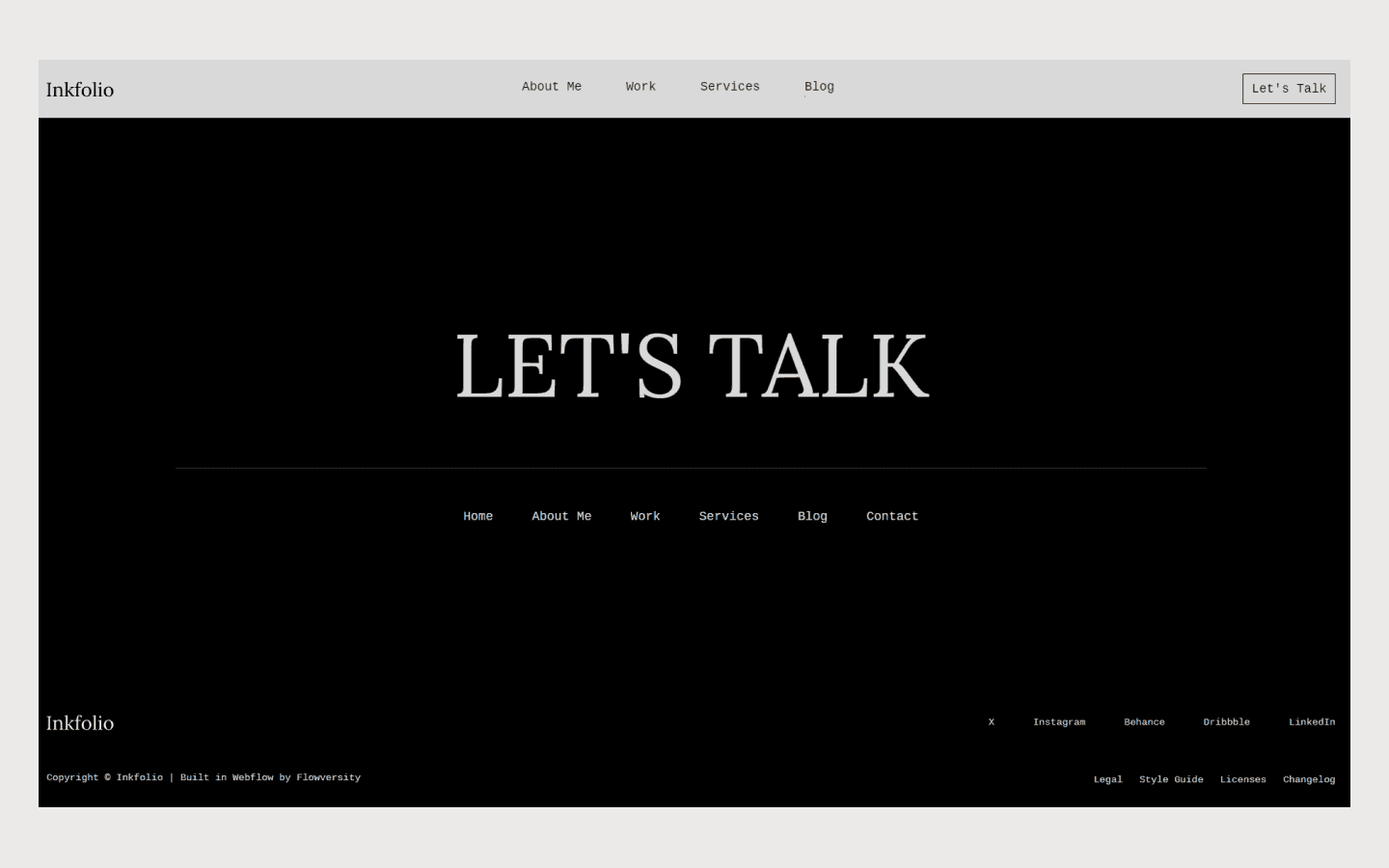 Professionally showcase your Portfolio with Inkfolio, a Webflow Portfolio Website Template designed to make building your Online Portfolio a breeze. Share your work, write your own dedicated Blog and get more Clients! All Pages are fully responsive out of the Box and are ready to be edited and filled with your personal Content.