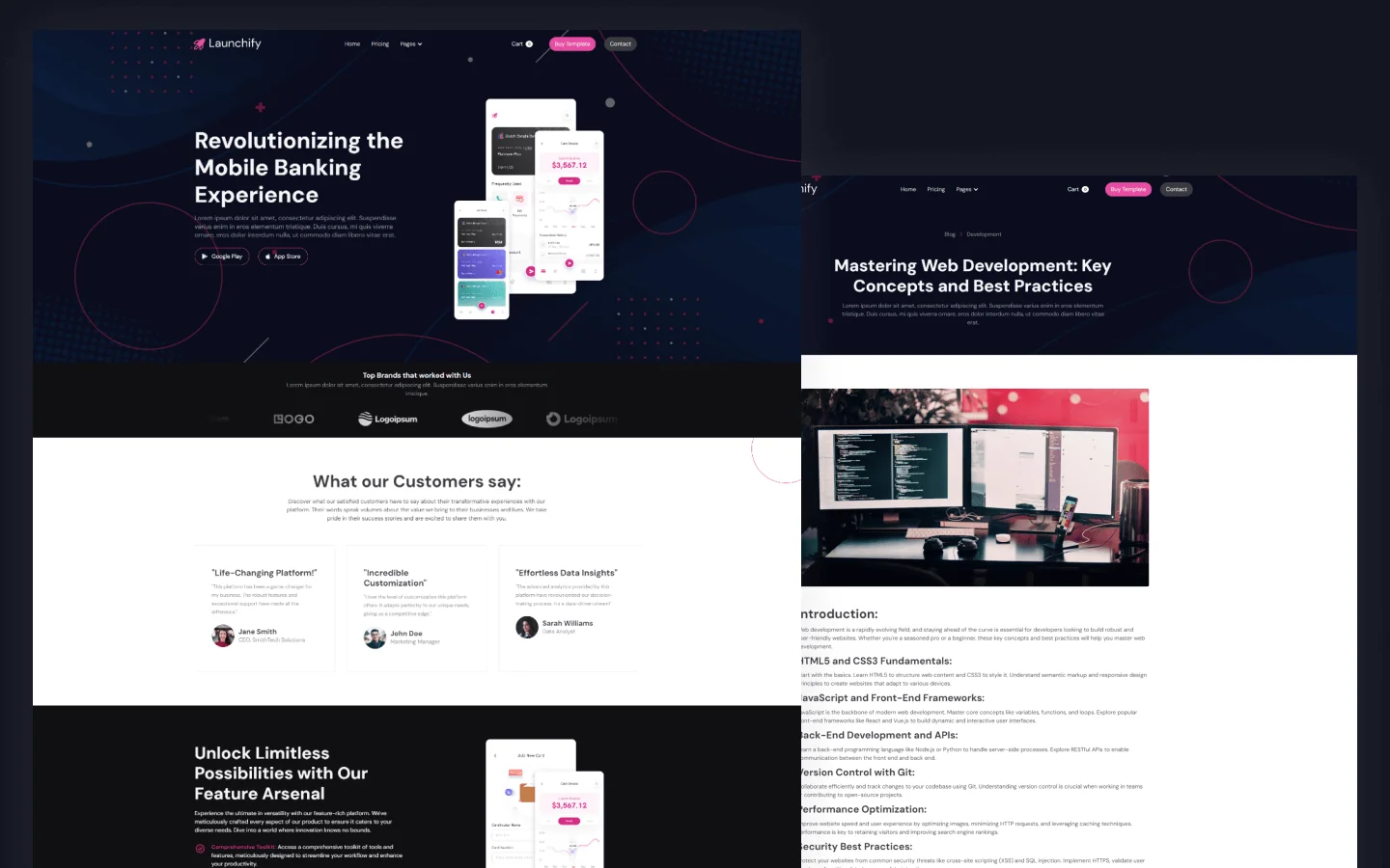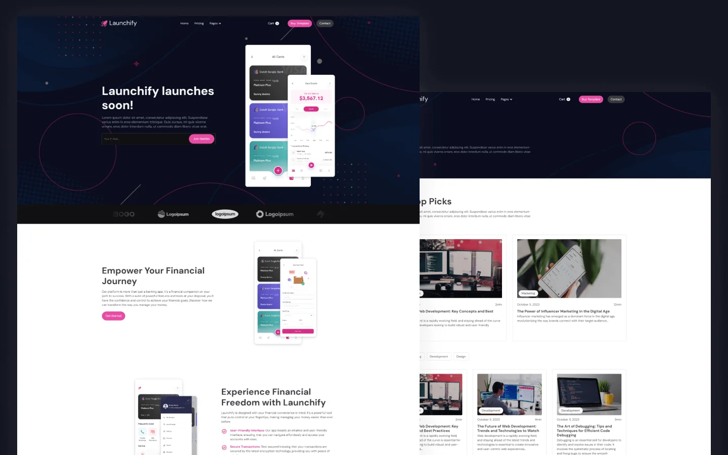Launchify is a multi-layout Webflow template perfect for app launches. Features clean, dark design with casual elements and 30+ pages for comprehensive product presentation.