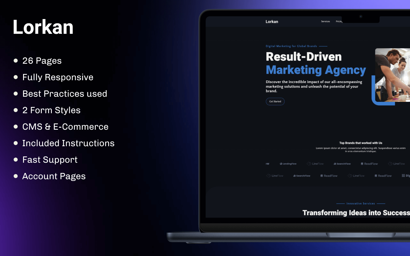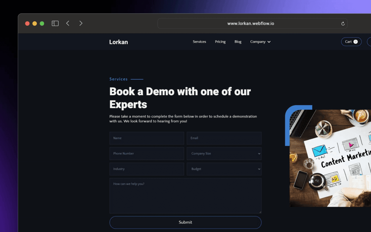 Meet Lorkan, a stunning and modern Webflow Marketing Template made for Marketing Pages, Landing Pages, SaaS & AI Companies and much more. Turn your Visitors into Customers with it's unique Micro Interactions & Conversion focused Design.
