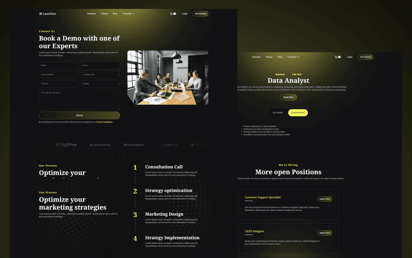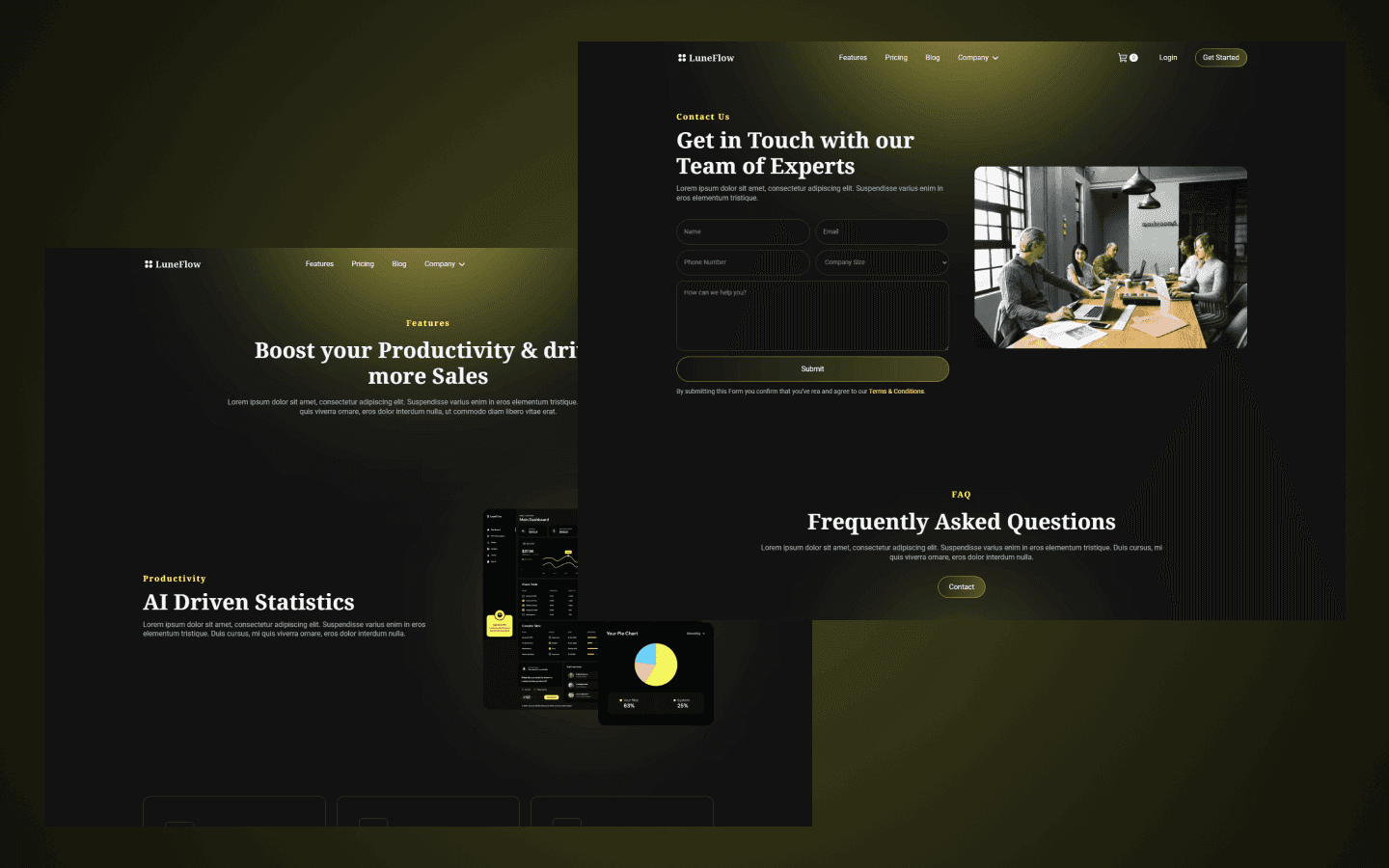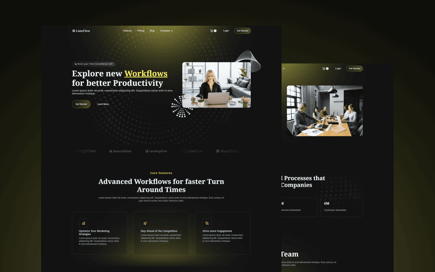 Launch your digital Products fast with LuneFlow, a modern, dark mode Marketing Webflow Website Template designed for Marketing Agencies, SaaS, AI, Tech Products & more.