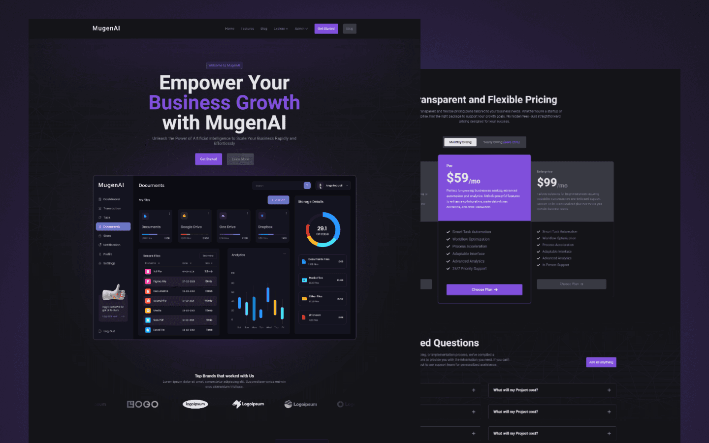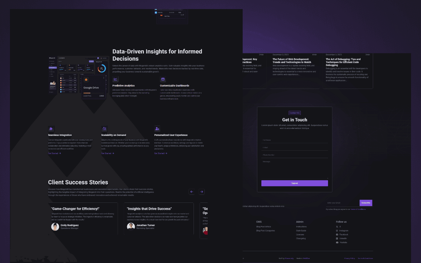 MugenAI is a dark, modern Webflow template designed for AI and SaaS products. Features clean layouts, responsive design, and everything needed to launch AI-focused websites quickly.