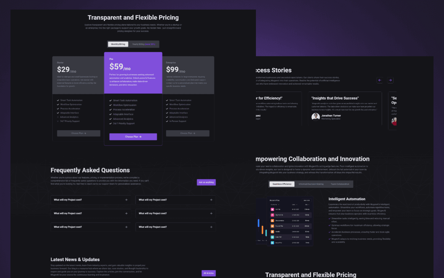 Jumpstart your next SaaS Venture with MugenAI, a small, yet powerful Webflow CMS Template designed for small Start-Ups and Entrepreneurs who wish to get their Businesses up and running today! Experience seamless efficiency with MugenAI's advanced automation capabilities. Our tool empowers your business processes by intelligently automating repetitive tasks, allowing your team to focus on strategic initiatives.