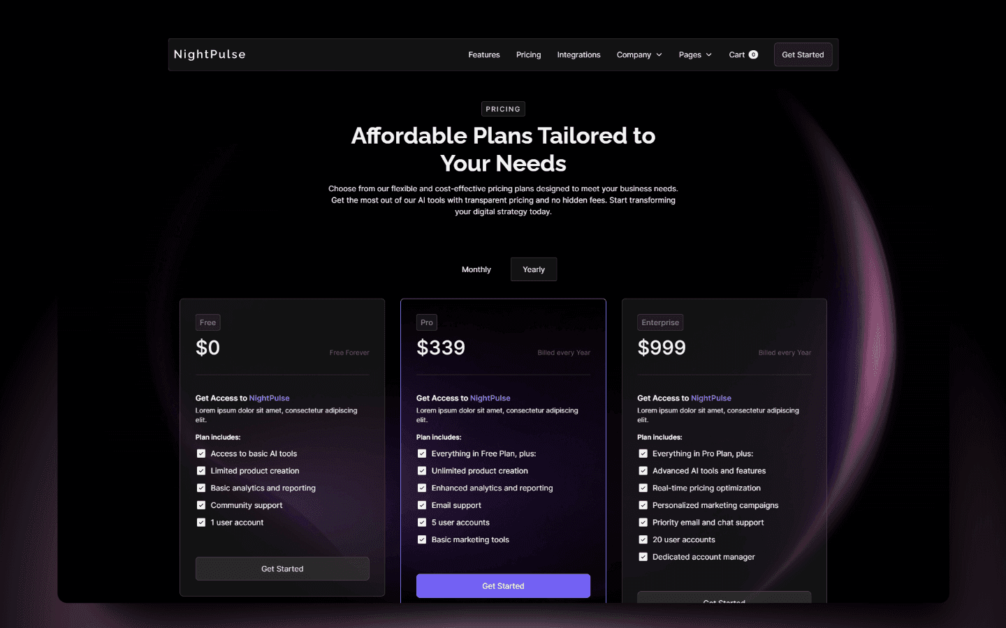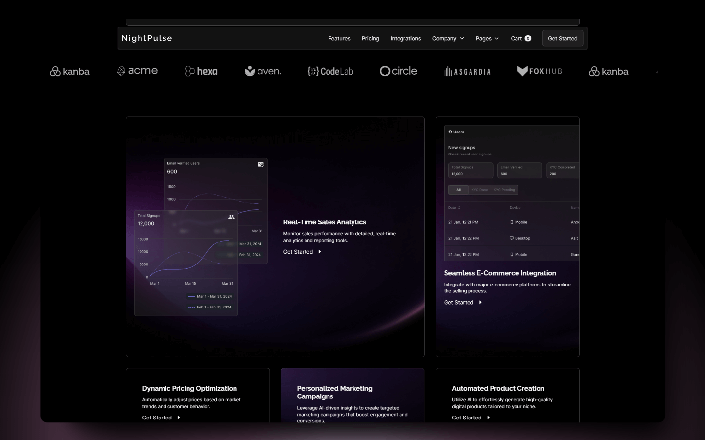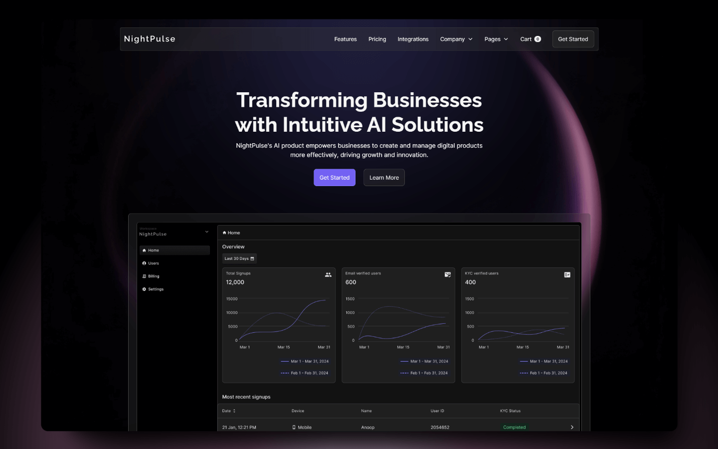 NightPulse is a sleek Webflow Template for SaaS, AI Tools, and Agencies. With a dark-mode design, responsive pages, and full CMS and e-commerce support, it's perfect for modern businesses.