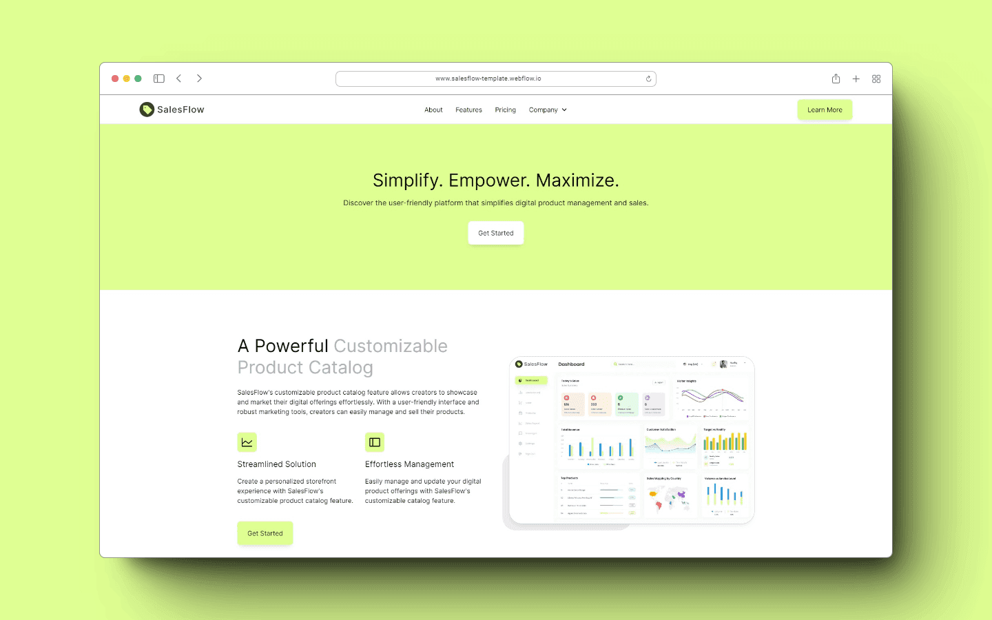 Meet SalesFlow, a modern & clean Webflow Marketing Template. Make your next Product launch a breeze and impress your Clients & Customers with a next level User Experience.