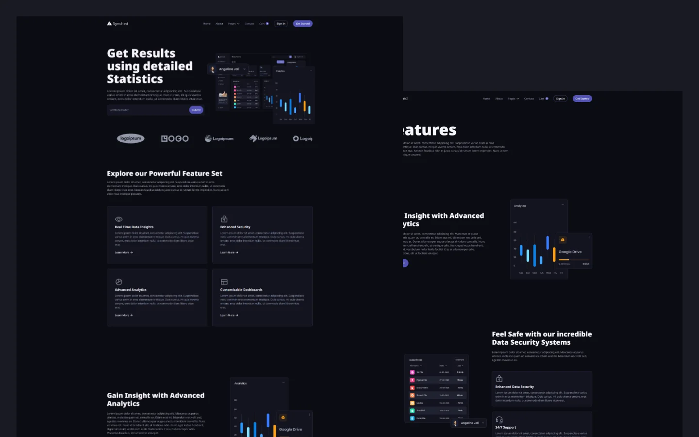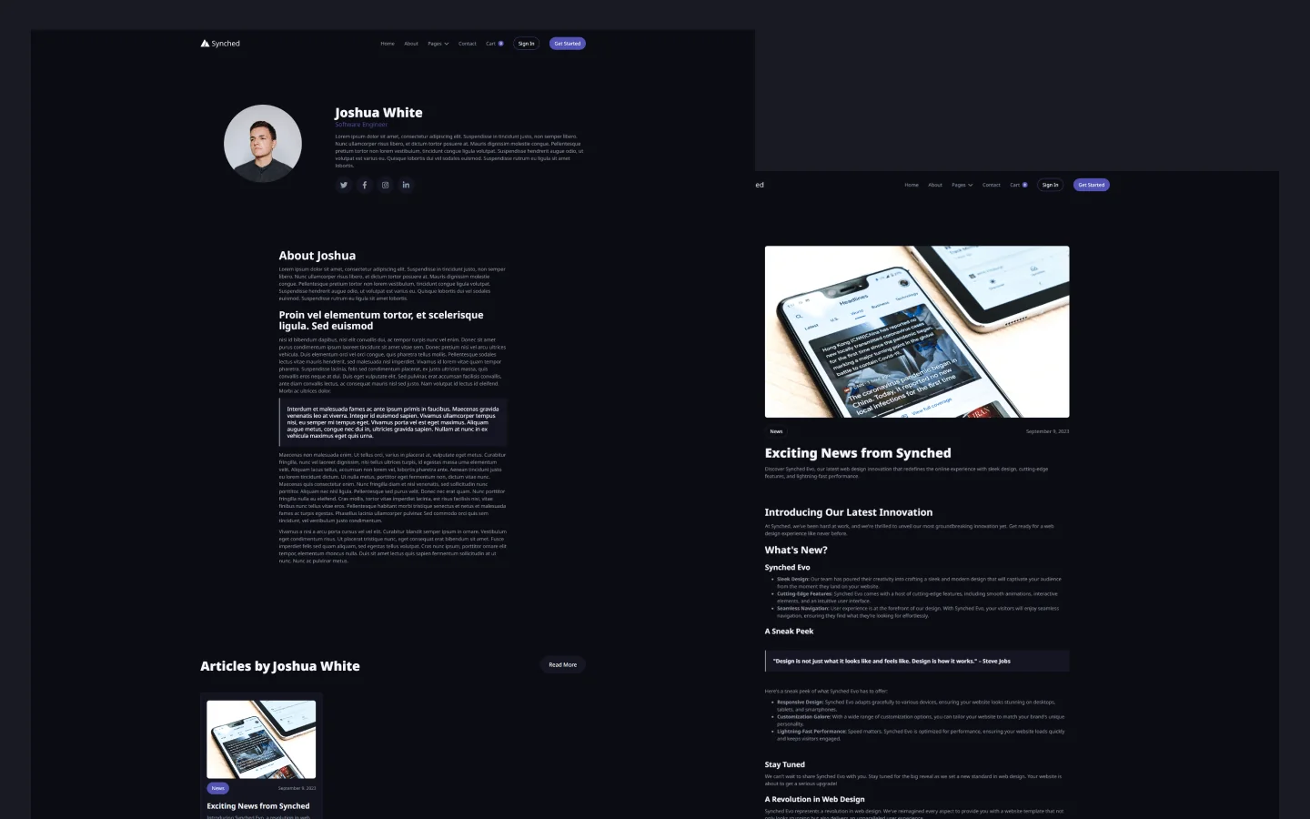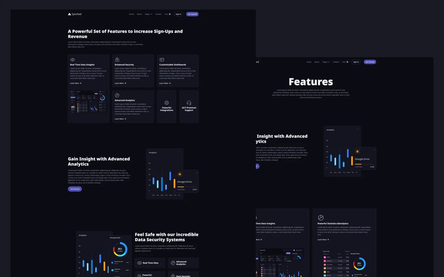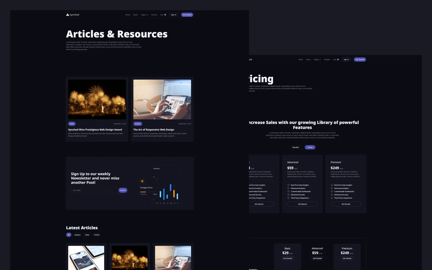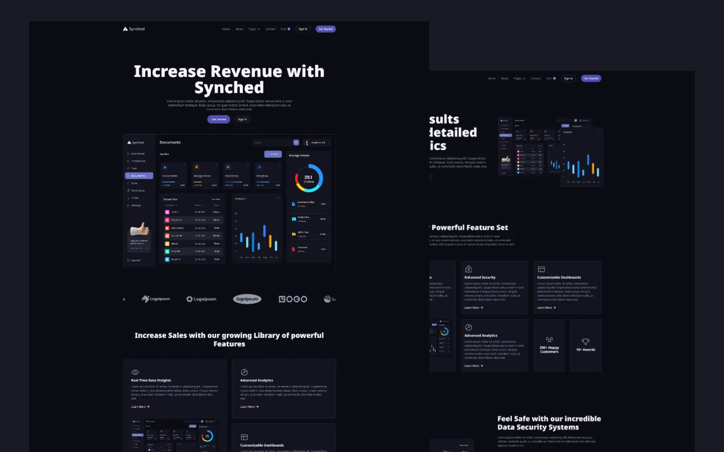 Synched is a dark, modern multi-layout Webflow template for SaaS businesses. Features 35+ pages, sophisticated design, and comprehensive functionality for professional SaaS websites.