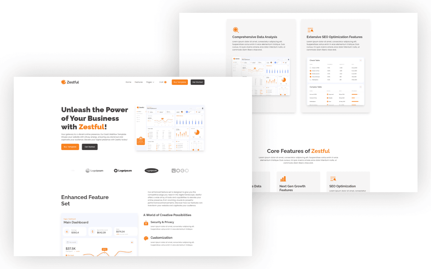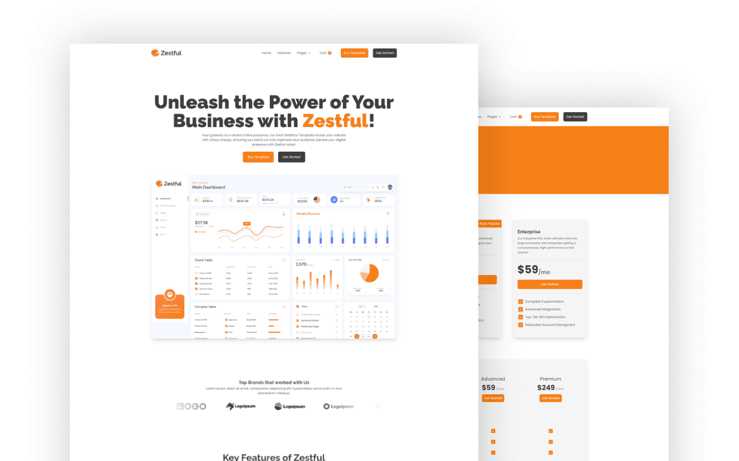 Zestful is a multi-layout Webflow template with light, corporate styling. Perfect for SaaS businesses needing versatile design options and professional presentation.