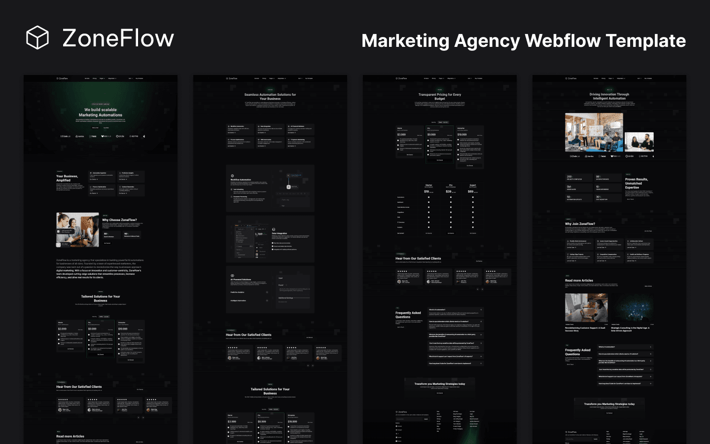 Meet ZoneFlow, a modern and timeless Marketing & Agency Webflow Template. With over 30 Pages, 5 CMS Collections and full Support for all of Webflow amazing Features you have everything in your hands to launch your Website today!🚀